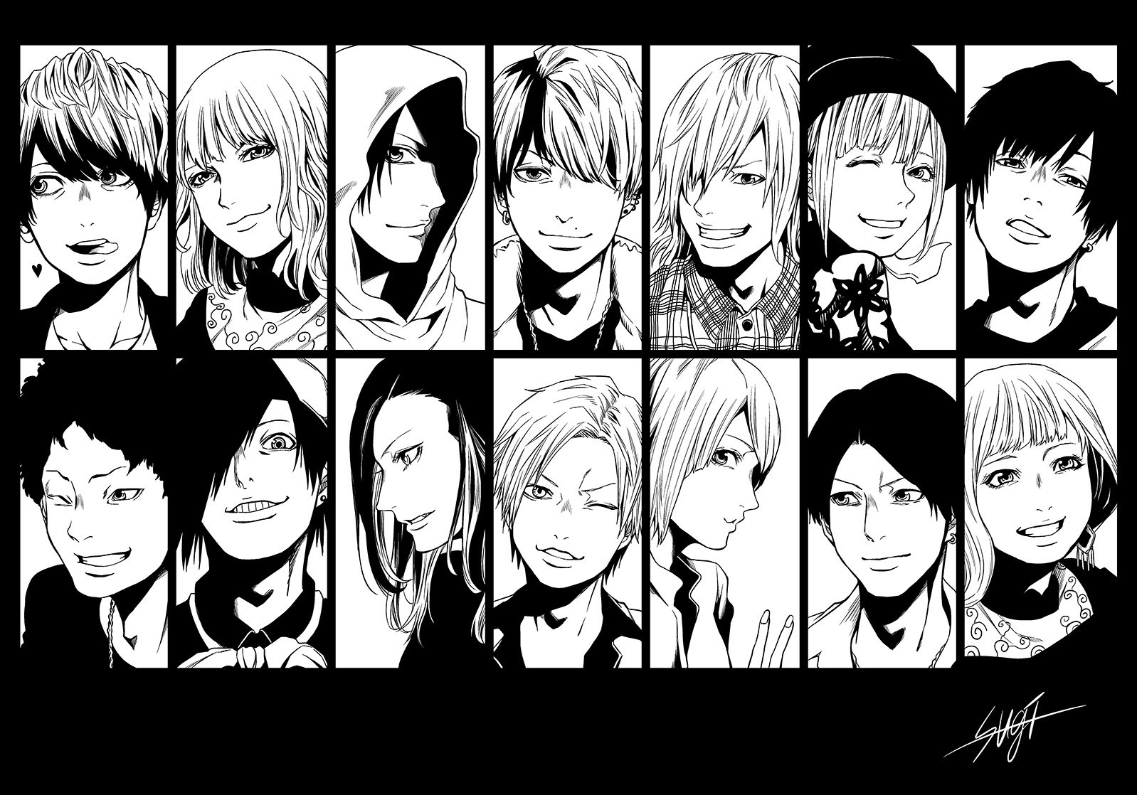 Pero no he vuelto a compartir el vídeo simplemente por esto, sino porque Sugi (a quien presenté brevemente aquí) ha dibujado la versión manga de todos y cada uno de los integrantes de esa coreo, que no son pocos, y ¡¡le han quedado genial!!